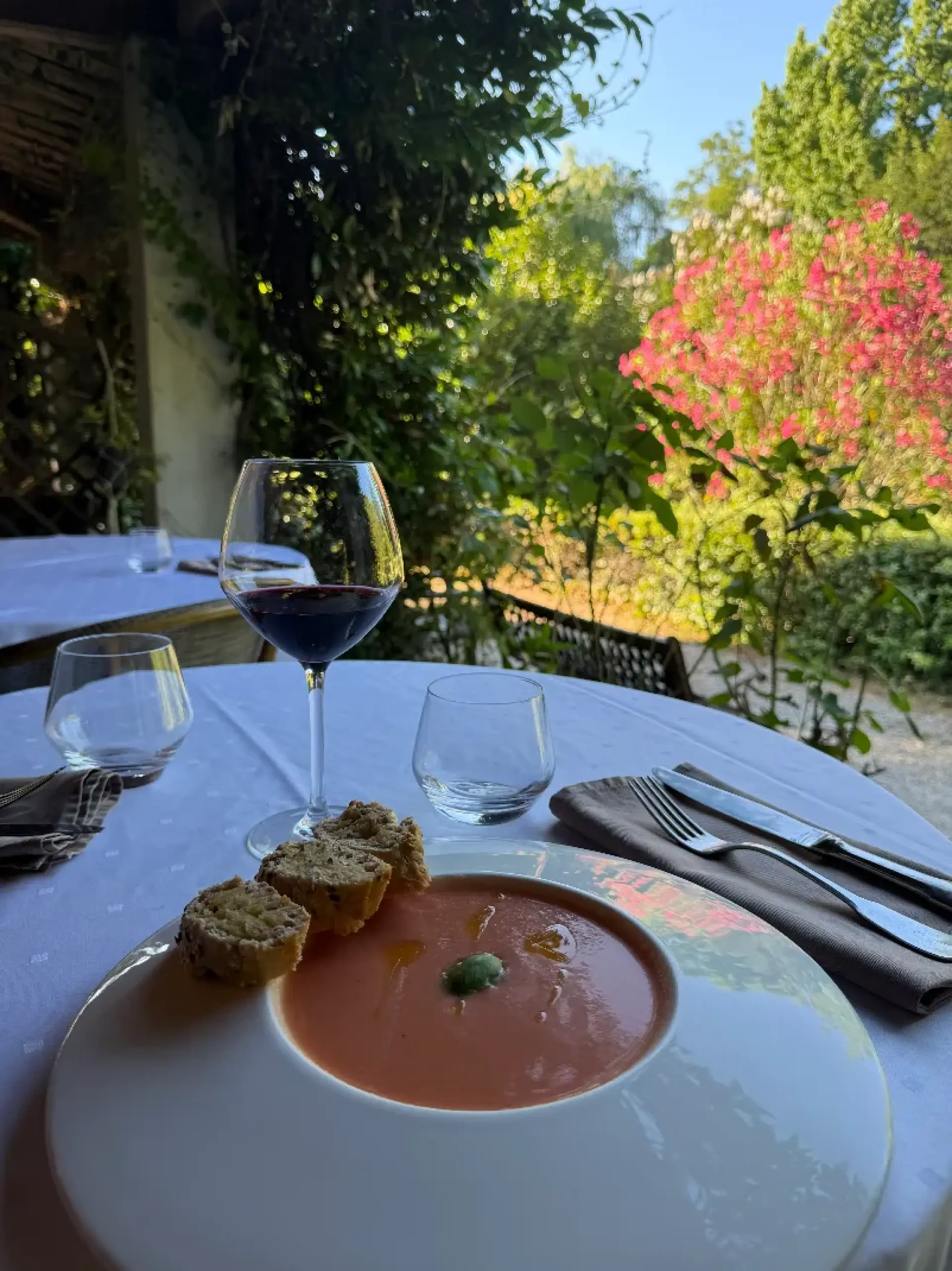 When the weather is fine, take a seat on our pretty shaded terrace or enjoy the coolness of our light-filled dining room. Whether for sunny lunches or candlelit dinners, the setting is perfect for any occasion.